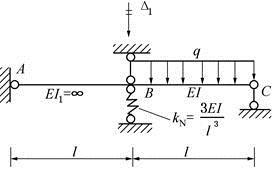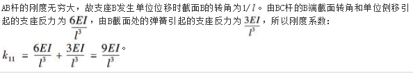 问题 如图所示的位移法基本体系中(图中结点B处的竖向刚性支杆为基本体系中的附加支杆),基本结构的刚度系数k11之值为(  )。