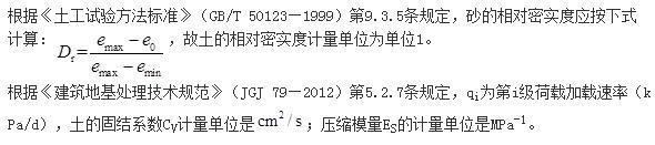 问题 《建筑地基处理技术规范》(JGJ 79—2012)中,砂土相对密实度Dr、堆载预压固结度计算中第i级荷载加载速率qi、土的竖向固结系数CV、压缩模量当量值ES的计量单位,下列哪些选项是不正确的?(  )