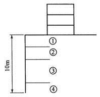 某基坑深10m,长方形,平面尺寸为50m×30m,距离基坑边4~6m为3层~4层的天然地基民房,场地底层从地面算起为:①填土层,厚2m;②淤泥质黏土层,厚...
