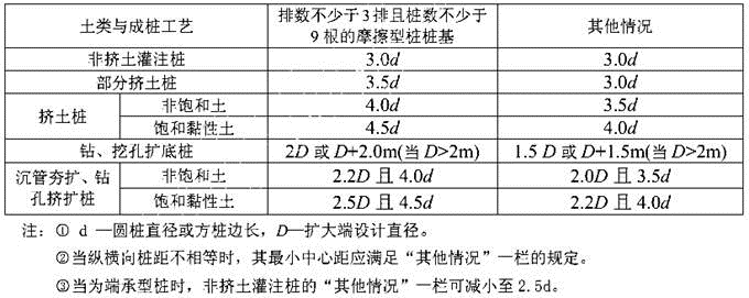 解析 根据《建筑桩基技术规范》(JGJ94—2008)第3.3.3条表规定,独立4桩承台为表中的其他情况,当扩底直径D大于2.0m时,基桩最小中心距为1.5D=1.5×2.2=3.3m。 表 桩的最小中心距