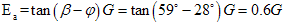 问题 图示的挡土墙墙背直立、光滑,墙后砂土处于主动极限状态时,滑裂面与水平面的夹角为θ,砂土的内摩擦角φ=28°,滑体的自重为G,试问主动土压力的值最接近下列哪个选项?(  )