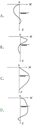 问题 某均质土基坑工程,采用单层支撑板式支护结构(如下图所示)。当开挖至坑底并达到稳定状态后,下列支护结构弯矩图中哪个选项是合理的(  )