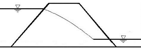 下图为一个均质土坝的坝体浸润线,它是下列哪个选项中的排水形式引起的(  ) A. 棱体排水 B. 褥垫排水 C. 直立排水 D. 贴坡排水
