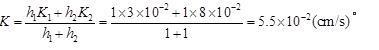 问题 两个水平含水层,厚度均为1.0m,Kc=3×10-2Cm/s,K2=8×10-2cm/s,水平渗流时的平均渗透系数为(  )×10-2cm/s。