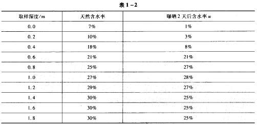 某盐渍土地段地下水位深1.8m,大于该地毛细水强烈上升高度与蒸发强烈影响深度之和,在开挖试坑的当时和曝晒两天后分别沿坑壁分层取样,测定其含水率随深度变化如...