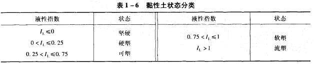 解析 根据《岩土工程勘察规范》(GB 50021 —2001 )(2009年版)第3. 3. 11条,黏性土的状态分类表,液性指数大于0且小于等于0.25的土处于硬塑状态。黏性土的状态根据液性指数IL划分为坚硬、硬塑、可塑、软塑和流塑,如表1-6所示。