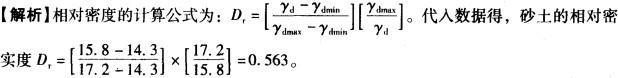 问题 已知砂土干重度γd= 15. 8kN/m3,又经实验测得最松状态下土的干重度γdmin = 14. 3kN/ m3,最紧状态下土的干重度γdmax= 17.2kN/m3,则砂土的相对密实度Dr( )。 A. 0.461 B. 0.563 C. 0.617 D. 0.892