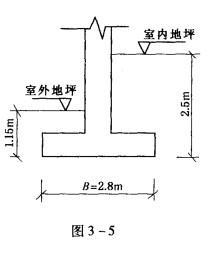 图3-5为一外墙基础,采用条形基础形式。地基承载力 特征值的修正公式为:fa =fak + ηbγ(b -3)+ηdγm(d-0.5),求b=______...