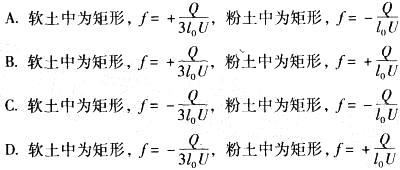 问题 如图4-3所示桩,其中0.5l0长穿过软弱土层,0.5l0长在粉土层中,之后桩端进入卵砾石层,桩顶受竖向荷重Q后,因大面积地面填土,使桩身轴力变化,通过桩身传感器量测,获如图所示桩身轴力分布图,若桩周长为U,据轴力分布特征,桩在软土及粉土中侧摩阻力的分布图形及数值为( )。
