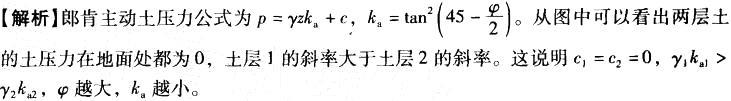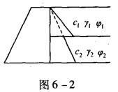 挡土墙后由两层填土组成,按朗肯土压力理论计算的主动土压力的分布如图6-2所示,下面哪一个选项所列的情况与图示土压力分布相符?( ) A. c1=c2...