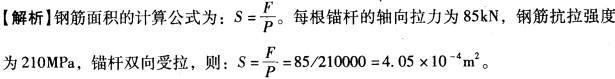 问题 某铁路路堑采用描杆挡墙支护,每根锚杆的轴向拉力为85kN,锚杆钢筋抗拉强度设计值为210MPa,其钢筋面积应不小于( )m2。 A. 4×10-4 B. 8×10-4 C. 0.4 D. 0.8