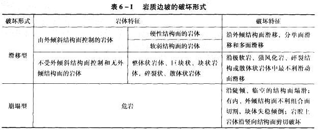 解析 岩质边坡崩塌型破坏的破坏特征如表6 - 1所示。