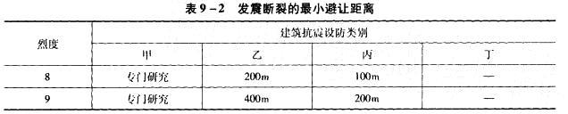 解析 根据《建筑抗震设计规范》(GB 50011 — 2010)第4. 1.7条,该场地中乙类建筑的最小避让距离为300m,如表9 - 2所示。