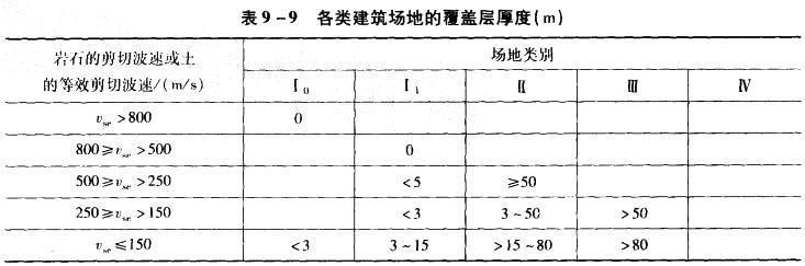 解析 根据《建筑抗震设计规范》(GB 50011 —2010)第4. 1. 6条,建筑的场地类别,应根据土层等效剪切波速和场地覆盖层厚度按表9 -9划分为五类。