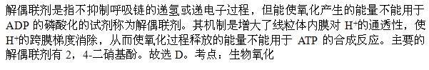能够作为解偶联剂的物质是A.CO B. C. D.二硝基苯酚 E.抗霉素A