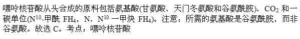 不是嘌呤核苷酸从头合成的直接原料的是A.甘氨酸 B.天冬氨酸 C.谷氨酸 D. E.一碳单位