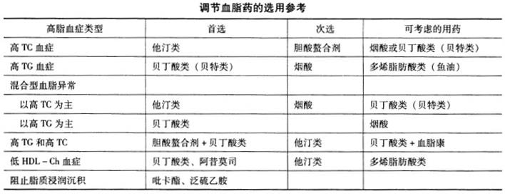 解析 本题考查要点是“调节血脂药的选用参考”。见下表。