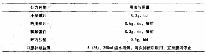 问题 患者,男,12岁,因纳差、恶心、呕吐、腹泻就诊,主诉里急后重,每小时排便3?4次,水样便,初步诊断为急性感染性腹泻,处方如下: