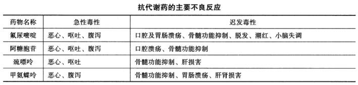 解析 本题考查要点是“抗代谢药主要不良反应”。抗代谢药的主要不良反应见下表: 根据上表可知,本题的正确答案为A。