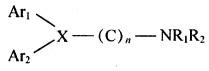 选项 A:Ar1和Ar2一般均是长链烷基 B:NRIR2一般是叔胺 C:通式中n一般为2 D:R1和R2可以成杂环 E:X可以是O、N或C