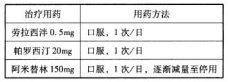 共用题干 患者男性,35岁,因惊恐障碍长期口服阿米替林,175mg,1次/日。因家中变故,惊恐发作加重,每周发作4~5次,前来就诊。诊断:焦虑症。医嘱:...