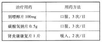 问题 共用题干 患者女,47岁。因“踝关节疼痛半月余”就诊。查体:大致正常。辅助检查:尿蛋白(+),血肌酐156μmol/L,血尿酸650μmol/L,余无明显异常。诊断:高尿酸血症;慢性肾脏病。医嘱: