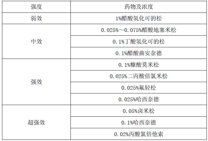解析 常用外用糖皮质激素的药物强度及浓度:
