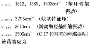 解析 本题考点是炔雌醇的红外光谱图特征吸收峰。