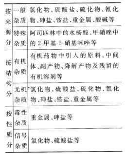 A.一般杂质,特殊杂质B.无机杂质,有机杂质C.生产中杂质,贮藏杂质D.信号杂质,害性杂质E.生物杂质,化学杂质杂质按下列分类方法分为