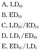 解析 【精析】本题考查药效学中基本概念的含义。半数致死量(LD50)是指能够引起试验动物一半死亡的药物剂量,通常用药物致死剂量的对数值表示。半数有效量(ED50)是指引起50%阳性反应(质反应)或50%最大效应(量反应)的浓度或剂量。治疗指数(T1)常以药物LD50与ED50的比值(LD50/ED50)表示药物的安全性,此数值越大药物越安全。表示药物安全性的指标有两个安全界限(LD1/ED99)和安全指数(LD5/ED95)。