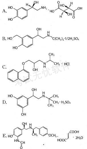 问题 肾上腺素能受体是介导儿茶酚胺作用的一类组织受体,为G-蛋白耦联型。根据其对去甲肾上腺素的不同反应情况,分为肾上腺素能α受体和β受体。药物可通过影响去甲肾上腺素的生物合成、贮存、释放等环节影响去甲肾上腺素作用效果。 β受体阻断剂普萘洛尔的化学结构为