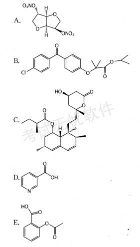 解析 【精析】C是他汀类药物,用于降低血脂。 【避错】本题注意区分几个药物的结构,他汀类.药物含有β-羟基内酯环。