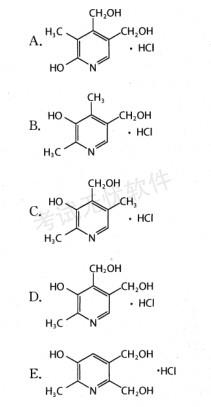 解析 【精析】本题考查维生素氏的相关知识。维生素氏的结构中,3,4位有两个二甲醇取代基,6,5位分别为甲基和羟基。 【避错】本题部分考生易选B,3,4位有两个二甲醇取代基,注意观察B、D的差异。