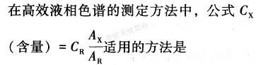 解析 本题考查对高效液相色谱法应用的熟悉程度。《中国药典》高效液相色谱法检查杂质的方法有:内标法加校正因子测定供试品中某个杂质的含量,计算公 自身对照法;面积归一化法。内标法加校正因子测定供试品中主成分的含量和外标法是高效液相色谱法含量测定的方法。这部分内容除以最佳选择题出现外,还可以多项选择题或配伍选择题出现。建议考生熟悉高效液相色谱法的应用以及公式中各符号的含义。本题答案应选B。