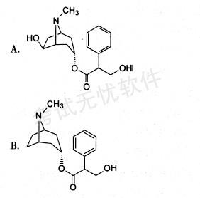 解析 本题考查药物的化学结构及特征,从结构的构成可得出答案,B为阿托品,6位有羟基的为山莨菪碱,6,7位有环氧的是东莨菪碱,但D为丁溴东莨菪碱,C为甲氧氯普胺,结构提示药名。故本组题答案应选BCAE。