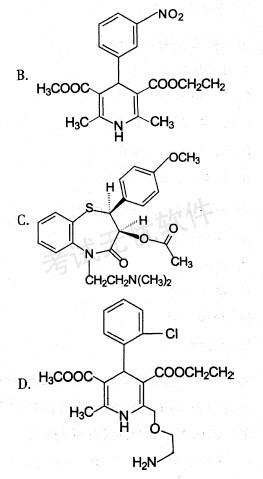 解析 重点考查钙拮抗剂的结构和作用,A为尼莫地平,其他依次为钙拮抗剂硝苯地平、地尔硫卓、氨氯地平、维拉帕米。尼莫地平3,5位为二酯及醚的结构,其脂溶性较大,易通过血脑屏障,到达脑脊液,主要用于治疗脑血管疾病,领防和治疗蛛网膜下隙出血后脑血管痉挛所致的缺血性神经障碍、高血压和偏头痛等。故本题答案应选A。