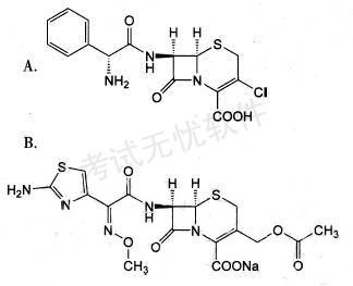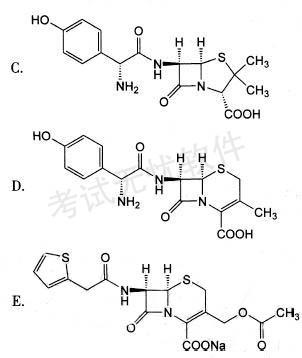 解析 本组题考查β-内酰胺类抗生素的结构。E为头孢噻吩钠。故本组题答案应选BDAC。