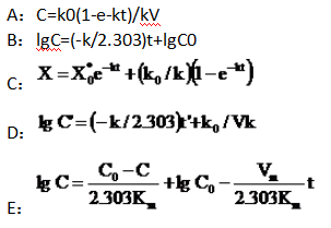 问题 单室模型静脉注射血药浓度随时间变化的公式是()。