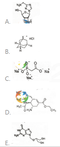 问题 神经氨酸酶是存在于流感病毒表面的糖蛋白,为抗病毒药物的作用靶点。神经氨酸酶可以切断神经氨酸与糖蛋白的连接,释放出病毒复制的关键物质唾液酸(神经氨酸),此过程如图所示: 神经氨酸酶抑制剂能有效阻断流感病毒的复制过程,发挥防治流感的作用。从结构判断,具有抑制神经氨醺酶活性药()