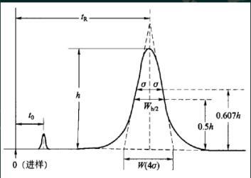 甘药物采用高效液相色谱法检测,药物响应后信号强度随时间变化的色谱图及参数如下,其中可用于该药物含量测定的参数是 A.t B.t. C.W D.h ...