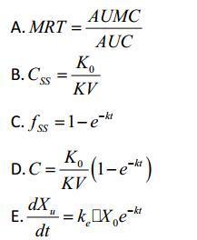 解析 p226 考察零阶矩( AUC)、一阶矩( MRT)、二阶矩(VRT)的缩写,其余选项: C 单室静滴达坪分数; D 单室静脉滴注血药浓度公式; E 单室静脉注射,尿药排泄速度与时间关系。