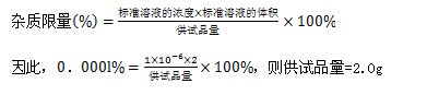 问题 取标准砷溶液(lUg As/ml)2.Oml制备标准砷斑,若规定供试液当中砷的限量为千万分之一(0.000l%),应取供试品的重量是