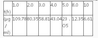 问题 给某患者静脉注射一单室模型药物,剂量1050mg,测得不同时刻血药浓度数据如下: 该药的半衰期为