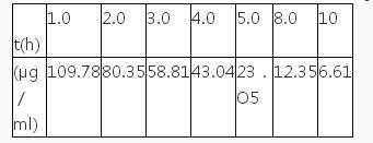 问题 给某患者静脉注射一单室模型药物,剂量1050mg,测得不同时刻血药浓度数据如下: 该药的清除率为