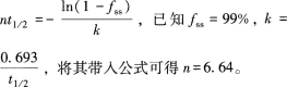 解析 本组题考查药动学参数。生物半衰期简称半衰期,即体内药量或血药浓度下降一半所需要的时间,药物的生物半衰期与消除速度常数一样可以衡量药物消除速度的快慢。在一级动力学过程中,t1/2是药物的特征参数,不因药物剂型、给药途径或剂量而改变。但消除过程具零级动力学的药物,其生物半衰期随剂量的增加而增加,药物在体内的消除速度取决于剂量的大小。静脉滴注给药达到坪浓度某一分数所需要的时间以n个t1/2表示,计算公式为:
