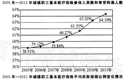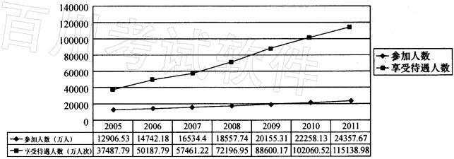 问题 2010年平均每个参保人员享受的基本医疗保险次数约比2006年( )。 A.上升了 15% B.上升了 35% C.下降了 15% D.下降了 35%