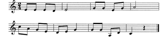 问题 要求: (1)用下列谱例中a,b两个乐句和自己创编的两个乐句构成四个乐句乐段。 (2)乐段的结构为起承转合。