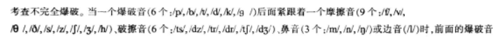 解析 只作部分爆破。方法是:对于前一个爆破音,作好发音的姿势,刚发出时,立即过渡到第二个摩擦音或破擦音上去。第一个爆破音发出的声音是非常轻微的,有时甚至听不出来。这种现象叫作不完全爆破。(备注:此题干中四个选项设置不严谨,按照不完全爆破的发音规律,此题A、B两项都符合题意,大家通过本题掌握“不完全爆破”的发音规律即可。)