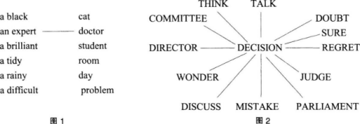 解析 (1)词汇教学方法: 图1体现了词语搭配法。通过将左栏的形容词与右栏的名词组成词块进行记忆.如将a black与cat进行搭配组成ablack cat词块、更有利于学生记忆单词的用法. 图2体现了联想式教学法。教师通过给出关键词或某一主题,激发学生对相关主题词汇的联想和提取.以达到词汇记忆的目的. (2)词语搭配法的优点:第一,避免了记忆孤立、单词难度过大的问题,搭配组成词块便于学生对单词的记忆;第二,有利于学生达到运用单词的目的,提高学生对单词的搭配能力。 该方法的缺点:只给出一组的词语搭配容易造成学生对英语词汇学习的思维定势。 联想式教学法的优点:第一,有利于激发学生的想象,激活思维,促进学生对关键词的思考。第二,有利于激发学生学习英语的兴趣,扩大学生的词汇量。 该方法的缺点:学生从记忆中提取单个单词,并不能理解单词运用的方法,只能记住概念。 (3)这两种教学方法遵循了词汇教学的两个原则: ①词语搭配法遵循了运用性原则:在教授单词时.通过运用性原则可以将孤立的单词组成词块而在语言输出时得以运用,利于学生由词成句,由句成篇,最终达到运用语言的目的。 ②联想式教学法遵循了系统性原则:词汇教学时教师要注意给学生展示词汇之间的系统性、联系性。使学生建构知识网络,理解记忆单词,达到更好的学习效果。