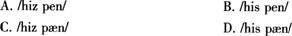 问题 The phrase "his pen" is pronounced as_________in real speech.